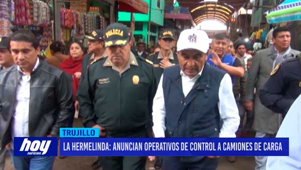 Mano dura. Tras un recorrido, el alcalde de Trujillo Daniel Marcelo junto al Subcomandante de la III Macro Región Policial de La Libertad Óscar Gonzáles, anunció que mañana sábado 22 inician la fiscalización a aquellos camiones que cargan y descargan en el mercado La Hermelinda fuera del horario establecido.