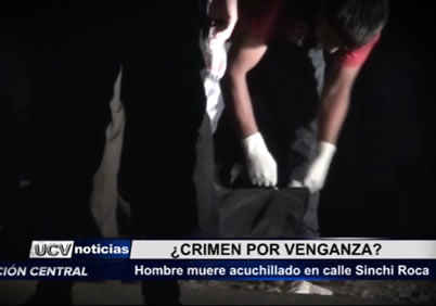 Inicio Actualidad Hombre muere acuchillado en calle Sinchi Roca ActualidadNoticiasTrujillo Hombre muere acuchillado en calle Sinchi Roca Por Tv Cosmos - 24/03/2015 422 0 FacebookTwitterPinterestWhatsApp Un hombre murió tras ser acuchillado cerca al cuarto donde vivía en el cercado de Trujillo. Al parecer, lo asesinaron por venganza. TE PUEDE INTERESAR Si te interesa nuestras noticias, puedes seguir nuestras últimas publicaciones por Facebook, Twitter, y puedes suscribirte aquí a nuestro canal de TUITEA, COMENTA Y COMPARTE Tweets by CosmosNoticiasPe Artículos relacionadosMás del autor NUEVO CONSEJO DIRECTIVO ASUME LA ASOCIACIÓN NUMISMÁTICA Y FILATÉLICA DE TRUJILLO Congreso premiará este martes a ganadores del Concurso Nacional de Fotografía “Mujeres que Inspiran” Alejandro Sanz presenta el video de ‘Rimowa’ en colaboración con Elena Rose POPULAR CATEGORIESNoticias66232Actualidad51007Trujillo42650Nacionales9348Deportes7303Espectáculos4545 NUEVO CONSEJO DIRECTIVO ASUME LA ASOCIACIÓN NUMISMÁTICA Y FILATÉLICA DE TRUJILLO TV COSMOS - 05/03/2026 0 Congreso premiará este martes a ganadores del Concurso Nacional de Fotografía “Mujeres que Inspiran” TV COSMOS - 03/03/2026 0 Alejandro Sanz presenta el video de ‘Rimowa’ en colaboración con Elena Rose TV COSMOS - 23/02/2026 0 Jaze logra su primer sold out en México y consolida su gira internacional TV COSMOS - 23/02/2026 0 Han pasado más de 20 años y la anemia sigue afectando a más del... TV COSMOS - 19/02/2026 0 - Advertisement -