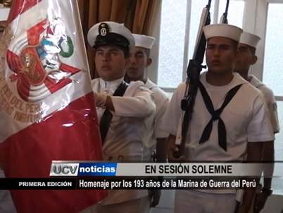 Ayer por la mañana se realizó una sesión solemne en el Salón Consistorial de Trujillo para rendir homenaje a la Marina de Guerra del Perú al conmemorarse sus 193 años de creación institucional.