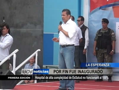 El Presidente de la República, Ollanta Humala, visitó nuestra ciudad para inaugurar el Hospital de Alta Complejidad ‘Virgen de la Puerta’ de EsSalud. Lamentablemente, dicho establecimiento aún no operará al 100%.