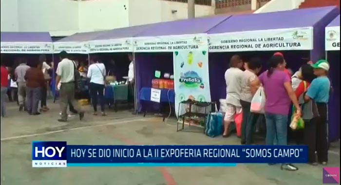 Hoy se dio inicio a la II Expoferia Regional “Somos campo”, comprale a tu paisano, en el distrito de Víctor Larco. Treinta y uno asociados de productores agropecuarios vienen comercializando sus productos orgánicos y de banderas de sus respectivas jurisdicciones. La feria estará hasta mañana sábado 07 de marzo.