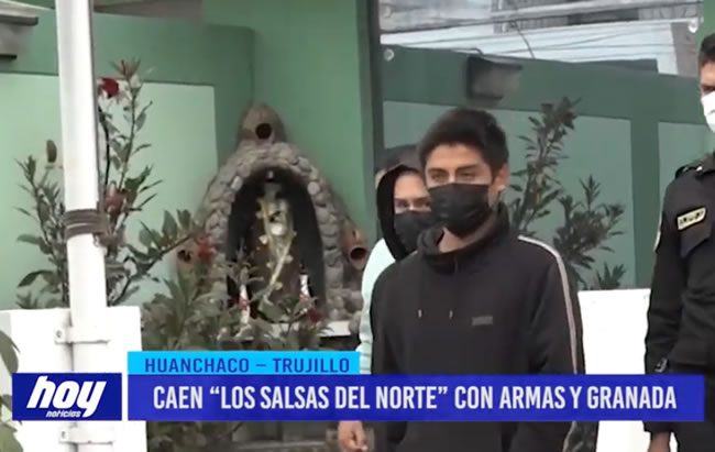 En el centro poblado Víctor Raúl en el distrito de huanchaco, la policía nacional detuvo a presuntos integrantes de la banda criminal “Los Salsas del Norte”, identificados como Jonathan Aguilar Ávila de 29 años (a) “pastel”, cabecilla de la organización, Anthony Buitrón Castilla de 23 años (a) “machete”, Luis Leiva Lescano conocido como “fox” y Nérida Vigo Soto (a) “loca Margot”