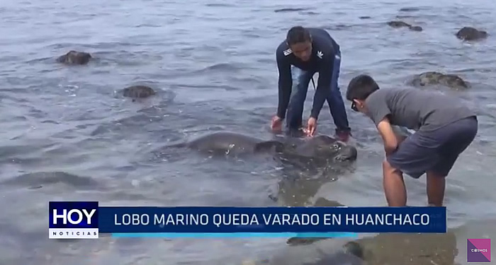 Un lobo marino quedó atrapado entre las piedras en la playa de Huanchaco, generando preocupación en decenas de visitantes. Una veterinaria le dio atención médica.