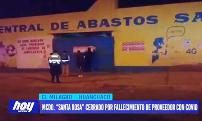El Mercado “Santa Rosa’’, principal abastecedor de alimentos del Centro Poblado de El Milagro, del distrito de Huanchaco, fue cerrado temporalmente debido al fallecimiento de un proveedor de frutas por coronavirus; ya que este frecuentaba el centro de abastos cada tres a cuatro días a la semana para abastecer el puesto de su esposa.