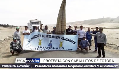 Los pescadores artesanales de Huanchaco tomaron la carretera Costanera para exigir la suspensión de las obras de asfaltado. Aseguran que el tránsito de vehículos afectará los totorales.
