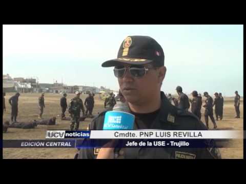 Efectivos de la Unidad de Servicios Especiales (USE) fueron capacitados en la playa de Huanchaquito. Adiestramiento de policías se basó en la aplicación del manual de control de multitudes, manejo del equipo antimotín y control físico de las personas.