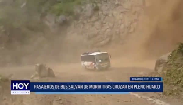 En el valle Santa Eulalia, en Huarochirí, Lima, un bus esquivó un huayco. El chofer de la unidad que transportaba decenas de pasajeros aceleró el paso sorteando el impresionante alud. Ocurrió el sábado al promediar las 5 de la tarde.