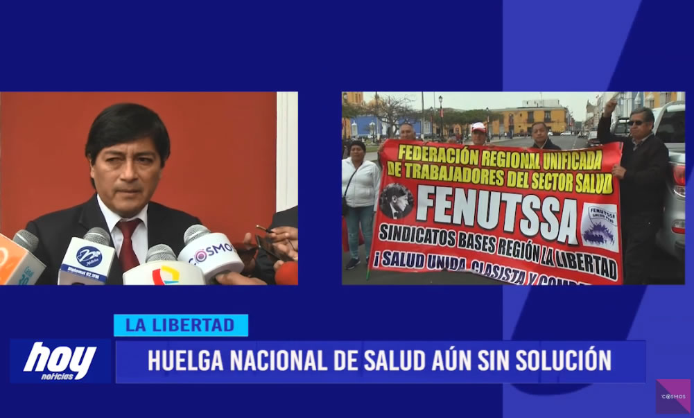 Inicio Actualidad Huelga nacional de salud aún sin solución ActualidadNoticiasTrujillo Huelga nacional de salud aún sin solución Por Tv Cosmos - 07/08/2019 500 0 FacebookTwitterPinterestWhatsApp El gerente regional de Salud, Constantino Vila, habló de la huelga de su sector y que a la fecha no hay visos de solución. Ha recomendado formalizar su pedido ante el congreso y al Ministerio de Economía. TE PUEDE INTERESAR Si te interesa nuestras noticias, puedes seguir nuestras últimas publicaciones por Facebook, Twitter, y puedes suscribirte aquí a nuestro canal de TUITEA, COMENTA Y COMPARTE Tweets by CosmosNoticiasPe Artículos relacionadosMás del autor NUEVO CONSEJO DIRECTIVO ASUME LA ASOCIACIÓN NUMISMÁTICA Y FILATÉLICA DE TRUJILLO Congreso premiará este martes a ganadores del Concurso Nacional de Fotografía “Mujeres que Inspiran” Alejandro Sanz presenta el video de ‘Rimowa’ en colaboración con Elena Rose POPULAR CATEGORIESNoticias66232Actualidad51007Trujillo42650Nacionales9348Deportes7303Espectáculos4545 NUEVO CONSEJO DIRECTIVO ASUME LA ASOCIACIÓN NUMISMÁTICA Y FILATÉLICA DE TRUJILLO TV COSMOS - 05/03/2026 0 Congreso premiará este martes a ganadores del Concurso Nacional de Fotografía “Mujeres que Inspiran” TV COSMOS - 03/03/2026 0 Alejandro Sanz presenta el video de ‘Rimowa’ en colaboración con Elena Rose TV COSMOS - 23/02/2026 0 Jaze logra su primer sold out en México y consolida su gira internacional TV COSMOS - 23/02/2026 0 Han pasado más de 20 años y la anemia sigue afectando a más del... TV COSMOS - 19/02/2026 0 - Advertisement -