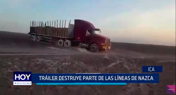 En Ica, los milenarios geoglifos conocidos como líneas de Nazca, fueron dañados por un tráiler que ingresó ilegalmente en este sitio patrimonio de la humanidad.