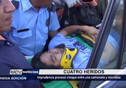 Cuatro heridos dejó el choque entre un micro de transporte público y una camioneta particular. El accidente ocurrió en la cuadra catorce de la avenida Larco.