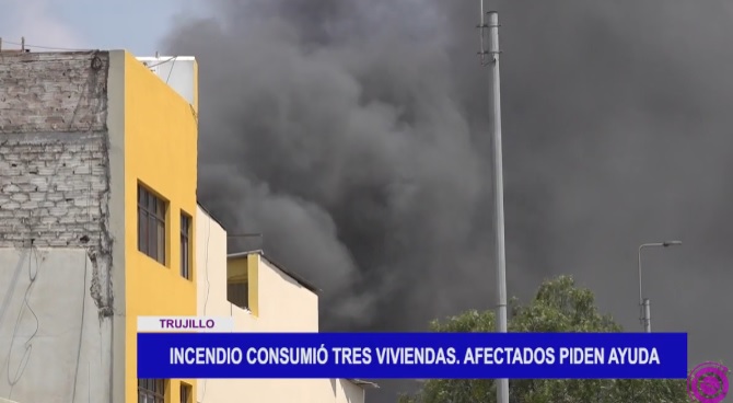 Un incendio de regular proporción consumió tres viviendas ubicadas en el centro de Trujillo. Al parecer la causa del siniestro habría sido un encendedor prendido. Los afectados piden ayuda, pues perdieron sus pertenencias.