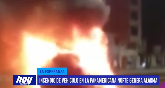 En el distrito de La Esperanza en la ciudad de Trujillo un auto se incendió en plena panamericana. Al parecer antes del siniestro fue impactado por otro vehículo para en cuestión de segundos arder en llamas.