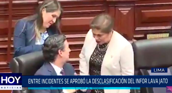 En medio de incidentes se aprobó la desclasificación del informe del caso lava jato. Incluso, la fujimorista Luz Salgado pidió al presidente del Congreso, Daniel Salaverry una reunión fuera del hemiciclo.