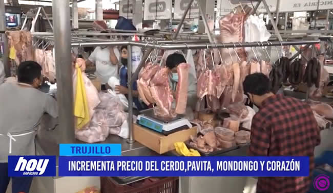 Acudimos al mercado ex Mayorista para conocer el precio de algunas carnes como opciones para reemplazar al pollo, que su precio se mantiene a S/9.50 y comprobamos que el cerdo, el mondongo, la pavita al igual que el corazón, también presenta un incremento.