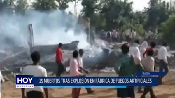 En la India, al menos 25 personas murieron y otras tres resultaron gravemente heridas tras una explosión en una fábrica de fuegos artificiales.