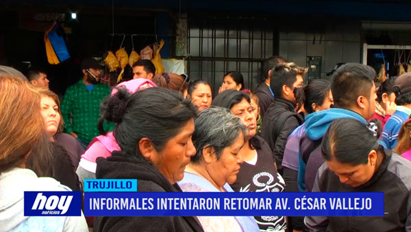 Esta mañana decenas de comerciantes informales intentaron retomar la Av. César Vallejo. Agentes policiales y de serenazgo frustraron su objetivo.