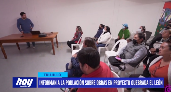 A fin de conocer mayores detalles sobre los trabajos en el proyecto quebrada El León, autoridades, líderes de organizaciones sociales de base y vecinos del distrito de Huanchaco y del centro poblado El Milagro participaron en una reunión informativa que ofrecieron especialistas del consorcio Besalco-stracon.
