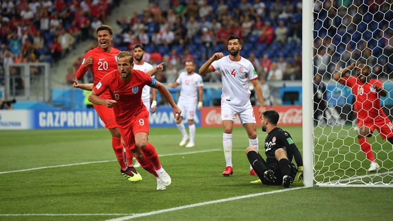 La selección de Inglaterra debutó con victoria en Rusia 2018 después de vencer por 2-1 a Túnez en la primera fecha del Grupo G. Kane hizo el doblete de la victoria. Sassi descontó con gol de penal a los 35′.