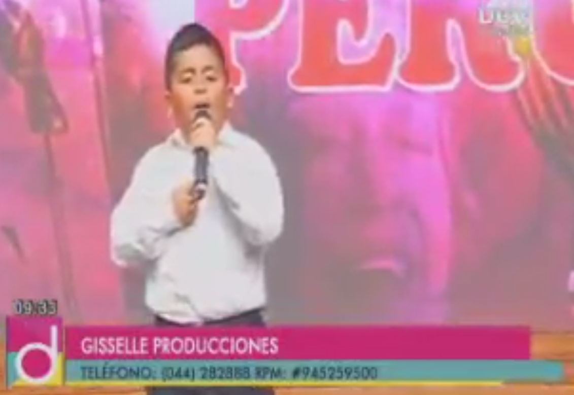 Inicia de nuevo la secuencia de CANTO AL PERÚ, no acompañaron los chicos de: Raymond Santos – Colegio Antonio Raymondi, Harumi Vargas – Colegio República de Panamá, Miguel Avalos – del Colegio Tupac Amaru II