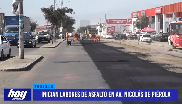 Iniciaron labores de asfalto en la avenida Nicolás de Piérola, en la ciudad de Trujillo. Vehículos que llegan del norte, desvían por ruta alterna. Obra durarán aproximadamente 40 días y esperan acelerar para evitar congestión en zona transitada.