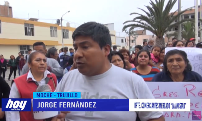 Los comerciantes del mercado La Amistad del distrito de Moche, realizaron una marcha por las principales calles de la ciudad y luego llegaron a la municipalidad para pedir dialogar con el alcalde.