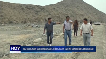El alcalde de Laredo y un grupo de funcionarios inspeccionaron las obras de encauzamiento en la quebrada San Carlos. Las labores ejecutadas el año pasado evitarán desbordes que puedan afectar el casco urbano del distrito.
