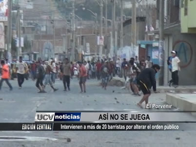 Más de 20 barristas de un equipo de fútbol fueron detenidos por personal de la Policía Nacional y Seguridad Ciudadana de El Porvenir por causar disturbios en la vía pública. En el enfrentamiento, una persona habría fallecido.
