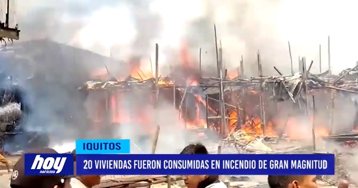 Unos promedios de 20 viviendas fueron consumidas a cenias, tras un voraz incendio que se registró entre los sectores Túpac Amaru II y Micaela bastidas, a espaldas de la Facultad de Enfermería de la Universidad Nacional de la Amazonía Peruana (UNAP), del distrito de Iquitos, provincia de Maynas región Loreto.