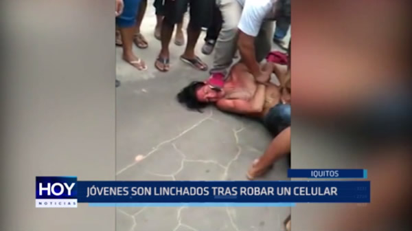 Inicio Noticias Iquitos Iquitos: Jóvenes son linchados tras robar un celular NoticiasIquitosNacionales Iquitos: Jóvenes son linchados tras robar un celular Por Tv Cosmos - 08/02/2017 657 0 FacebookTwitterPinterestWhatsApp En Iquitos, dos jóvenes fueron desnudados y linchados tras robar un celular. TE PUEDE INTERESAR Si te interesa nuestras noticias, puedes seguir nuestras últimas publicaciones por Facebook, Twitter, y puedes suscribirte aquí a nuestro canal de Cosmos Noticias TUITEA COMENTA Y COMPARTE Tweets by CosmosNoticiasPe Artículos relacionadosMás del autor Congreso premió a ganadores del concurso “Mujeres que Inspiran” PRIN oficializa candidatura presidencial y equipo piurano al Congreso Rospigliosi saluda a los peruanos por Navidad y ratifica compromiso con el país POPULAR CATEGORIESNoticias66232Actualidad51007Trujillo42650Nacionales9348Deportes7303Espectáculos4545 NUEVO CONSEJO DIRECTIVO ASUME LA ASOCIACIÓN NUMISMÁTICA Y FILATÉLICA DE TRUJILLO TV COSMOS - 05/03/2026 0 Congreso premiará este martes a ganadores del Concurso Nacional de Fotografía “Mujeres que Inspiran” TV COSMOS - 03/03/2026 0 Alejandro Sanz presenta el video de ‘Rimowa’ en colaboración con Elena Rose TV COSMOS - 23/02/2026 0 Jaze logra su primer sold out en México y consolida su gira internacional TV COSMOS - 23/02/2026 0 Han pasado más de 20 años y la anemia sigue afectando a más del... TV COSMOS - 19/02/2026 0 - Advertisement -