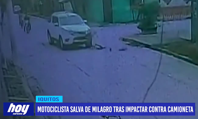 Un motociclista salvó de milagro tras impactar contra una camioneta, en Iquitos.