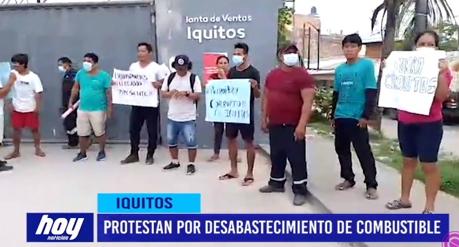 En la sede de refinería de Petroperú de la ciudad de Iquitos, trabajadores de grifos, de transporte público y fluvial protestaron contra la empresa exigiendo que se despache combustible por igual a todos los clientes, pues el desabastecimiento de combustible los ha dejado sin empleo.