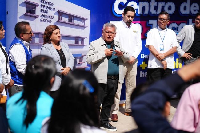 César Acuña estuvo antes en la ceremonia de colocación de la primera piedra de la nueva infraestructura del centro de salud “Elio Jácobo Caffo”, en el distrito de Moche, que se ejecuta con la modalidad de Obras por Impuestos, para beneficiar a 10 mil personas. Es el primer centro de salud a nivel nacional en modernizarse mediante la modalidad RIS (Redes Integrales de Salud)