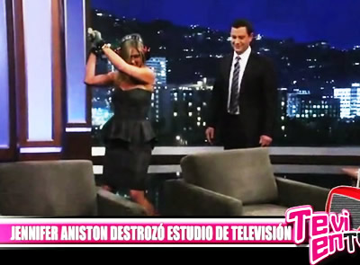 La actriz de “Friends” ingresó al estudio de televisión y rompió a “mazazos” la mesa del presentador para luego continuar con un mueble más pequeño y justificó los golpes diciendo que había que “deshacerse de todo lo viejo” ya que ahora Kimmel comienza con nuevo horario en la cadena ABC.