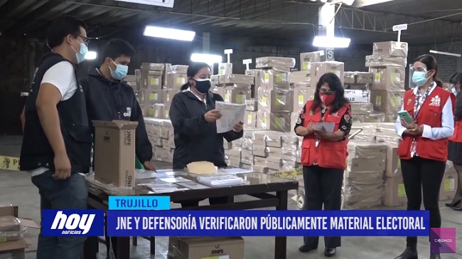 En la ODPE Trujillo, bajo la supervisión del Jurado Electoral especial y la Defensoría del Pueblo se realizó la verificación pública del material electoral. Este material se usará en las elecciones de este domingo. Así también se informó que los locales de votación serán desinfectados.