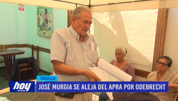 José Murgia pide suspender sus derechos partidarios en el Apra por investigación fiscal referente a presuntos actos de corrupción en la III etapa del proyecto especial Chavimochic, con la complicidad de la constructora Odebrecht.