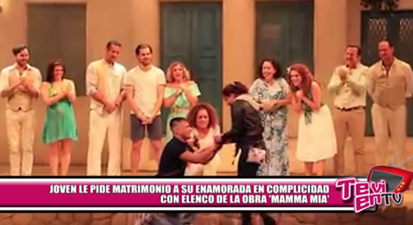 Para los románticos. Un joven que asistió junto a su enamorada a la obra teatral limeña «Mamma Mia» esperó el final de la función para pedirle matrimonio a su pareja, en complicidad con todo el elenco. El momento fue difundido en Facebook.
