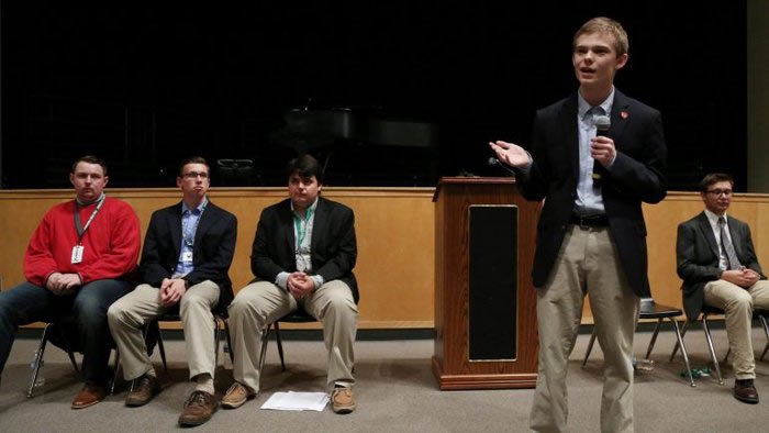 Seis adolescentes vestidos con trajes se postularon para gobernador del estado de Kansas, Estados Unidos. Por un momento se pensó que se trataría de una broma, gracias a un proceso legal los estudiantes podrían aspirar a gobernar un estado.