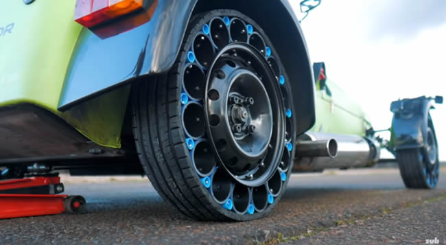 Dos jóvenes británicos fabricaron sus propios neumáticos antipinchazos, utilizando solamente tubos de pvc que se puede encontrar en cualquier ferretería.
