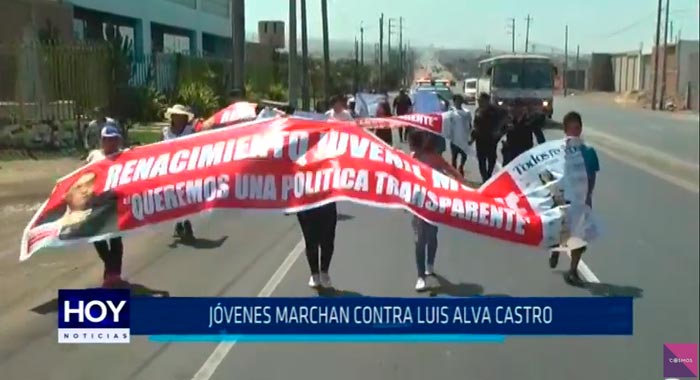 Un grupo de jóvenes del distrito de Moche realizó una marcha en contra de la corrupción y declararon persona no grata a Luis Alva Castro, quien según confesión de Jorge Barata fue el nexo para entregar 200 mil dólares a la campaña presidencial del APRA en el 2006.
