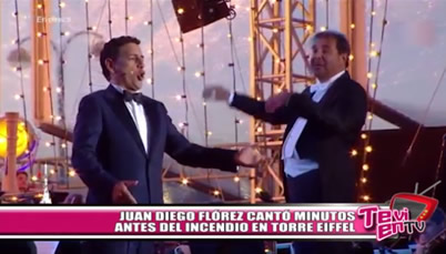 El tenor peruano Juan Diego Flórez se presentó bajo la Torre Eiffel en París, minutos antes del incendio ocurrido cerca del monumento francés, el cual alertó las alarmas en el país europeo, escenario este mismo día de un ataque en el que murieron decenas de personas arrolladas por un camión en la ciudad de Niza.