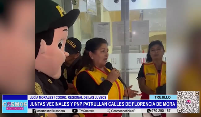 Las rondas mixtas con las Juntas Vecinales de Seguridad Ciudadana y la Policía Nacional forman parte de una estrategia para una mayor percepción de seguridad en los distritos de la provincia de Trujillo, esta vez el patrullaje se realizó por distintas calles de Florencia de Mora.