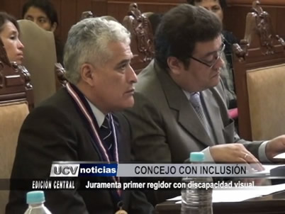 Juramentó el primer regidor de Trujillo con discapacidad visual. Se trata del ex jefe de OMAPED, Antonio Abanto. Durante la sesión, Abanto y otros regidores exigieron se instalen mecanismos de acceso a personas con discapacidad en el Palacio Municipal.