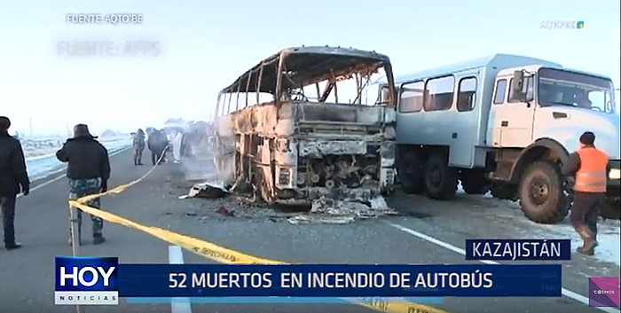 El incendio de un autobús al noroeste de Kazajistán dejó, el jueves, cincuenta y dos personas muertas y cinco con quemaduras de distintos grados, según informaron autoridades.