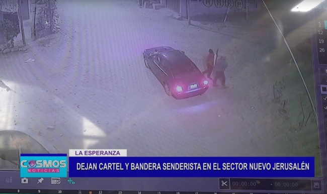 Según moradores y tras las cámaras de seguridad del lugar se registró a dos personas llegar a bordo de un vehículo a colocar este material en el arco de fierro.
