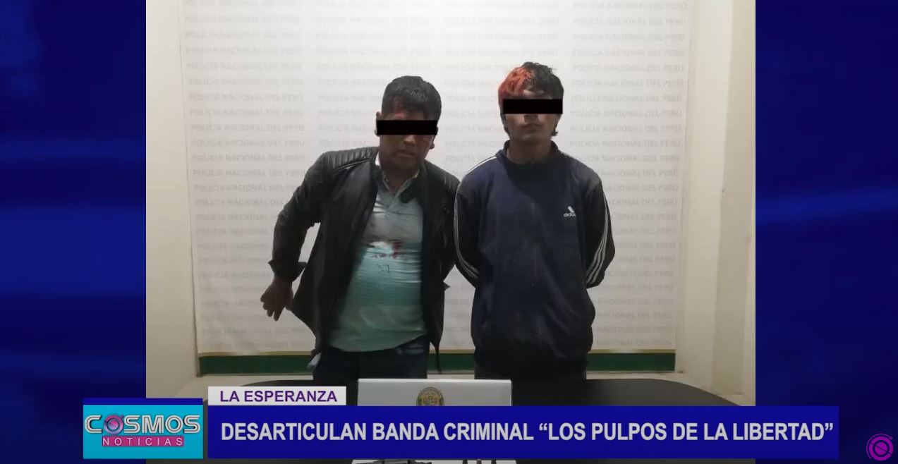 La PNP desarticuló e intervino a dos individuos, presuntos integrantes de la banda criminal ‘Los Pulpos de la Libertad’. A uno de ellos se le encontró un arma de fuego. Ambos fueron puestos a disposición de la Dipincri Norte para llevar a cabo las diligencias correspondientes.