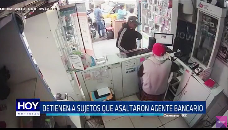 La Policía detuvo a un sujeto que fue captador por cámaras de seguridad en pleno asalto a un agente bancario, en el distrito La Esperanza. Su cómplice también fue detenido.