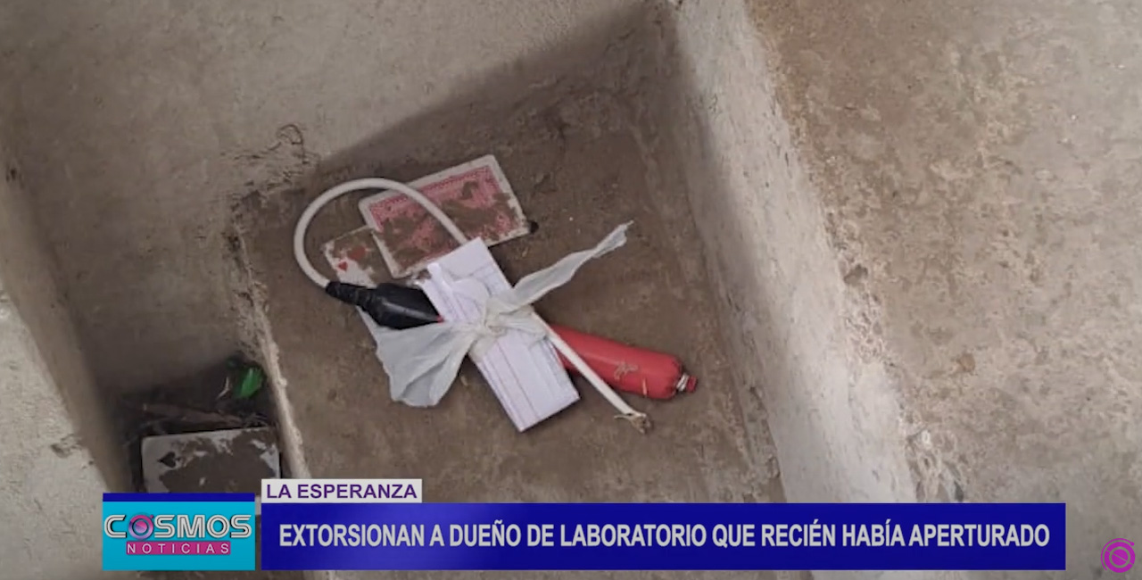 Un nuevo negocio es víctima de extorsión en el distrito trujillano de La Esperanza. Sujetos dejaron material explosivo en un laboratorio de análisis que llevaba solo dos días de haber sido aperturado.