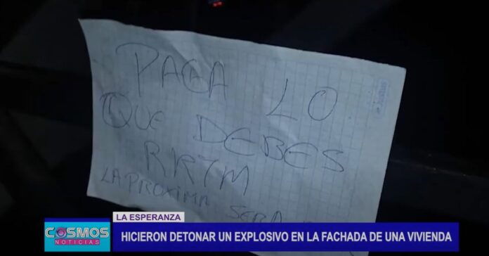 En el distrito de La Esperanza, en la ciudad de Trujillo, sujetos hicieron detonar un artefacto explosivo en la fachada de una vivienda, en donde además dejaron un papel escrito en el cual exigen paguen una deuda.