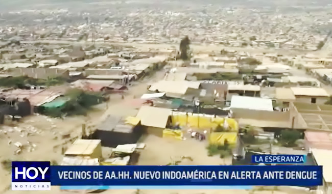 Moradores del asentamiento humano Nuevo Indoamerica en el distrito de La Esperanza exigen la intervención de las autoridades sanitarias, dado a la proliferación de zancudos, tras el huayco que cayó hace 2 semanas.