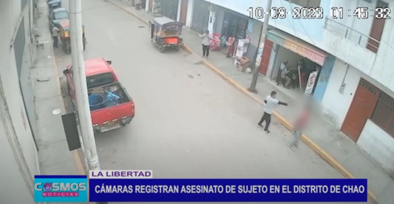 Cámaras de seguridad registraron el instante del crimen de Juan Carlos Benites en el distrito de Chao la tarde del jueves. La policía afirma que todo apuntaría a un presunto ajuste de cuentas.